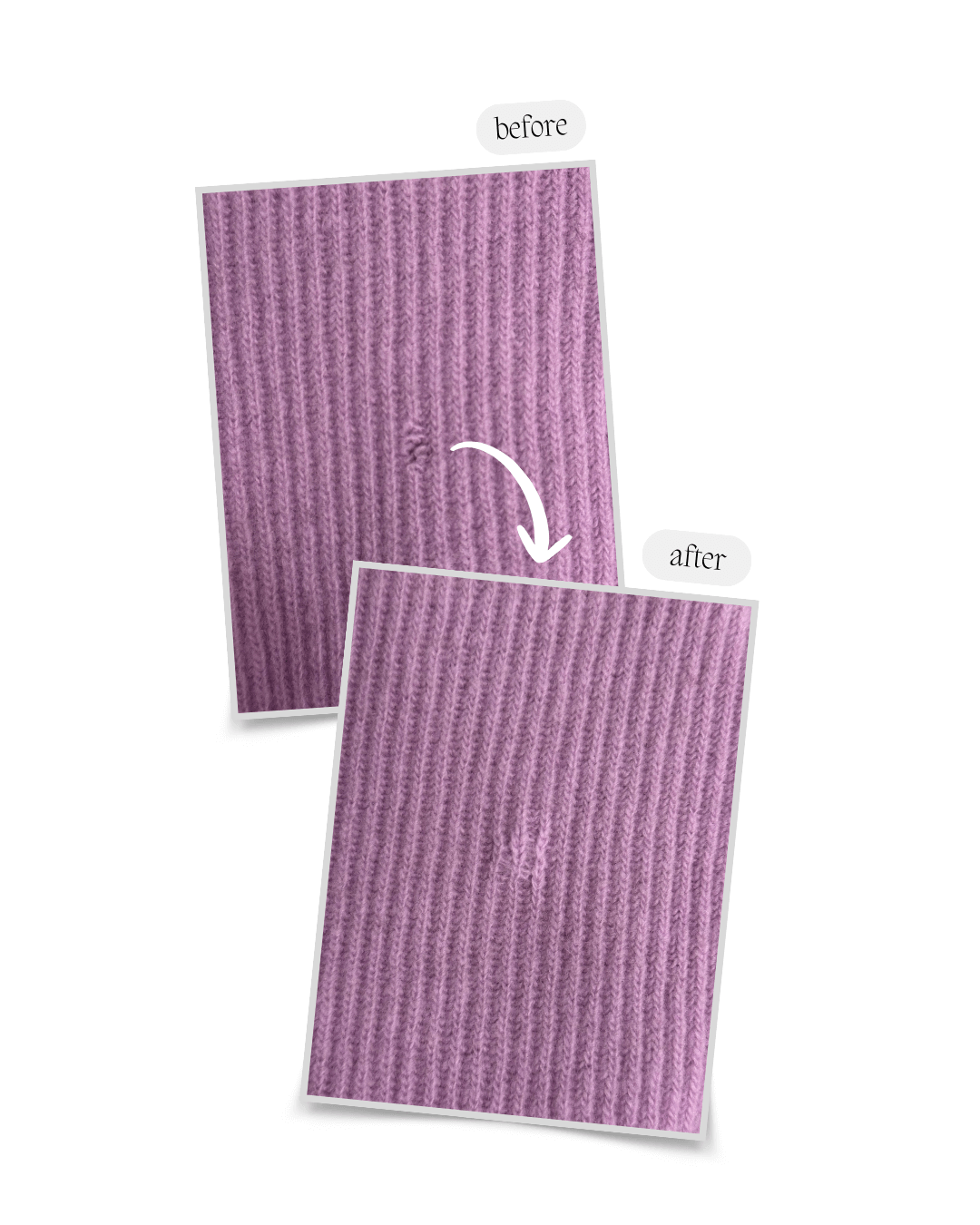 We’ll take a look, confirm if the repair is possible, suggest the best approach, and share the price before you send your knit.